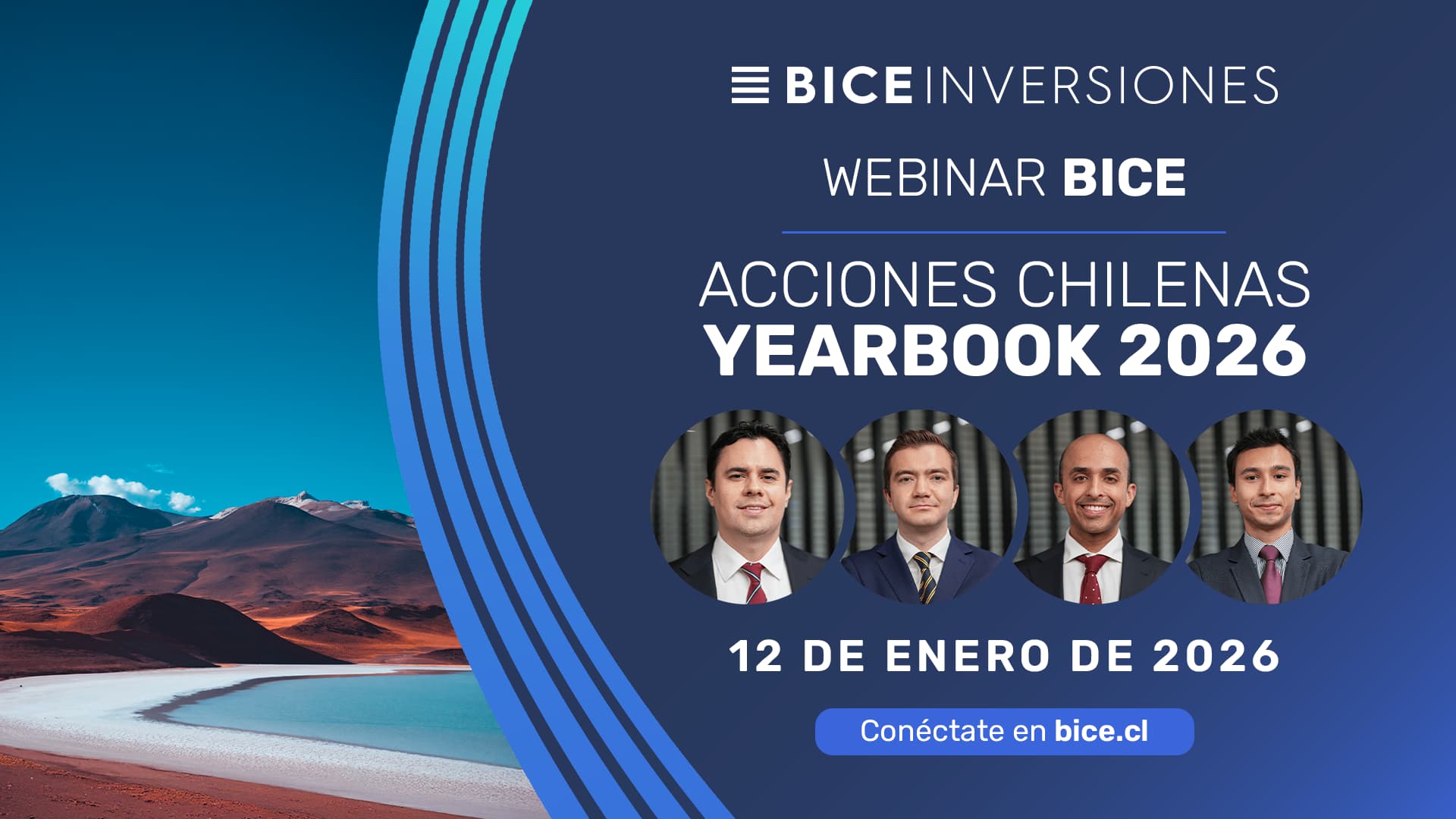 Te invitamos a nuestro próximo Webinar BICE, junto al equipo de BICE Inversiones, que entregará su visión y recomendaciones para este 2026. ¡No te lo pierdas!